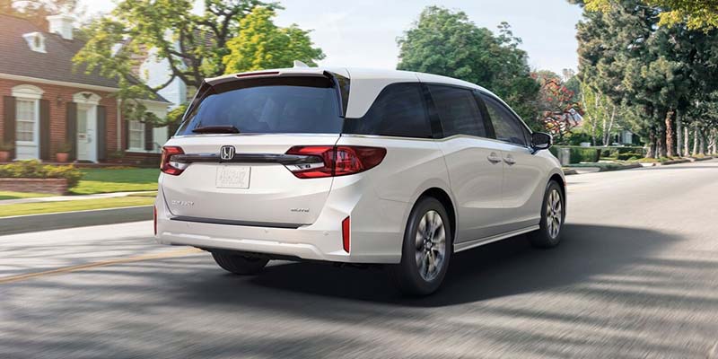 The Odyssey features a sleek, modern exterior with standard 18-inch alloy wheels, while higher trims offer 19-inch wheels. LED headlights and fog lights are included across all trims for improved visibility. The minivan has a spacious footprint with a length of about 205.2 inches, a width of 79.5 inches, and a height of 69.6 inches, giving it a commanding presence on the road. The vehicle comfortably seats up to eight passengers, making it ideal for large families.