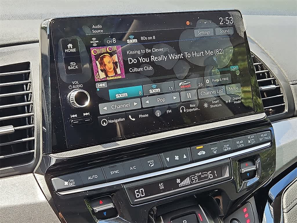 - Radio: 160-Watt AM/FM/HD/SiriusXM Audio System -inc: 7 speakers including subwoofer, 9" color touchscreen display, 7" TFT Meter, multi-zone audio, Bluetooth® HandsFreeLink, Bluetooth® streaming audio, HondaLink, HondaLink subscription services, Speed-Sensitive Volume Compensation (SVC), Radio Data System (RDS), wireless Apple CarPlay compatibility, wireless Android Auto compatibility, Wi-Fi Hotspot capability, 2.5-amp USB smartphone/audio interface, CabinTalk in-car PA system, advanced rear entertainment system w/12.8" high-resolution screen, HDMI interface w/USB-A, headphone jack (3rd row), Honda Satellite-Linked Navigation System w/voice recognition and Honda HD digital traffic, CabinWatch rear seat monitor, illuminated steering wheel-mounted controls and fin-type roof-mounted antenna, All SiriusXM services require a subscription, sold separately by SiriusXM after the trial period, If you decide to continue service, the plan you choose will automatically renew at the then-current rates, Fees and taxes apply, See the SiriusXM customer agreement and privacy policy at www.siriusxm.com for full terms and how to cancel, which includes calling 1-866-635-2349, Available in the 48 contiguous U.S, and D.C, Some services and features are subject to device capabilities and location restrictions, All fees, content and features are subject to change, SiriusXM, Pandora and all related logos are trademarks of Sirius XM Radio Inc, and its respective subsidiaries