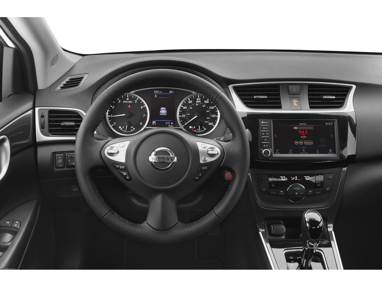 The sleek and modern exterior of the Sentra SR is complemented by 17-inch alloy wheels, a sporty rear spoiler, and body-colored mirrors and door handles, creating a striking presence on the road. Step inside, and youll be greeted by premium sport cloth seating, a leather-wrapped steering wheel, and a host of convenient features, including a rearview camera, steering wheel-mounted controls, and USB charging ports for your devices.