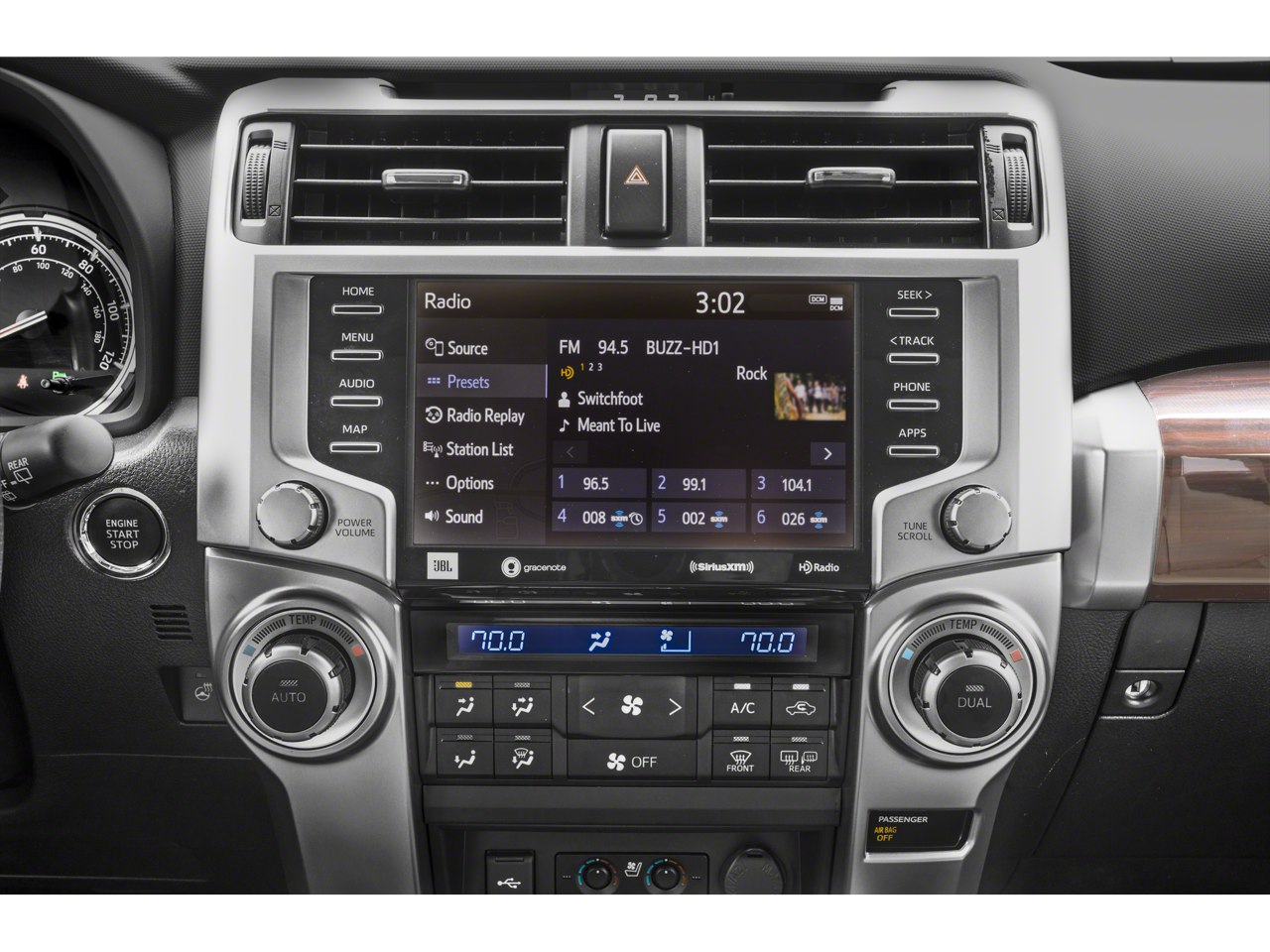 - Radio: Premium Audio w/JBL -inc: 8.0" touch-screen display, HD radio, 15 speakers including subwoofer and amplifier, Android Auto, Apple CarPlay and Amazon Alexa compatible, USB media port, 4 USB charge ports, Dynamic Navigation w/up to a 3-year trial, Dynamic POI Search, Dynamic Voice Recognition, hands-free phone capability and music streaming via Bluetooth® wireless technology, SiriusXM w/3-month Platinum Plan trial and Connected Services (Safety Connect w/1-year trial, Service Connect w/10-year trial, Remote Connect w/1-year trial, Wi-Fi Connect w/up to 2 GB within 3-month trial and Destination Assist w/1-year trial), See toyota.com/audio-multimedia for details