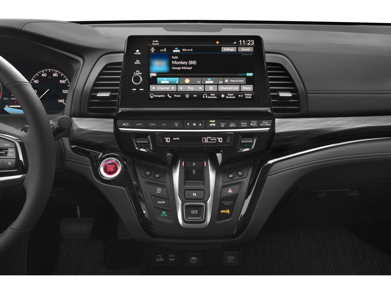 - Radio: 500-Watt AM/FM/HD Premium Audio System -inc: 11 speakers including subwoofer, 9" color touchscreen display, 7" TFT Meter, multi-zone audio, Bluetooth® HandsFreeLink, Bluetooth® streaming audio, HondaLink, HondaLink subscription services, Speed-Sensitive Volume Compensation (SVC), Radio Data System (RDS), wireless Apple CarPlay compatibility, wireless Android Auto compatibility, Wi-Fi Hotspot capability, 2.5-amp USB smartphone/audio interface, CabinTalk in-car PA system, advanced rear entertainment system w/12.8" high-resolution screen, HDMI interface w/USB-A, headphone jack (3rd row), Honda Satellite-Linked Navigation System w/voice recognition and Honda HD digital traffic, CabinWatch rear seat monitor, illuminated steering wheel-mounted controls and fin-type roof-mounted antenna, All SiriusXM services require a subscription, sold separately by SiriusXM after the trial period, If you decide to continue service, the plan you choose will automatically renew at the then-current rates, Fees and taxes apply, See the SiriusXM customer agreement and privacy policy at www.siriusxm.com for full terms and how to cancel, which includes calling 1-866-635-2349, Available in the 48 contiguous U.S, and D.C, Some services and features are subject to device capabilities and location restrictions, All fees, content and features are subject to change, SiriusXM, Pandora and all related logos are trademarks of Sirius XM Radio Inc, and its respective subsidiaries